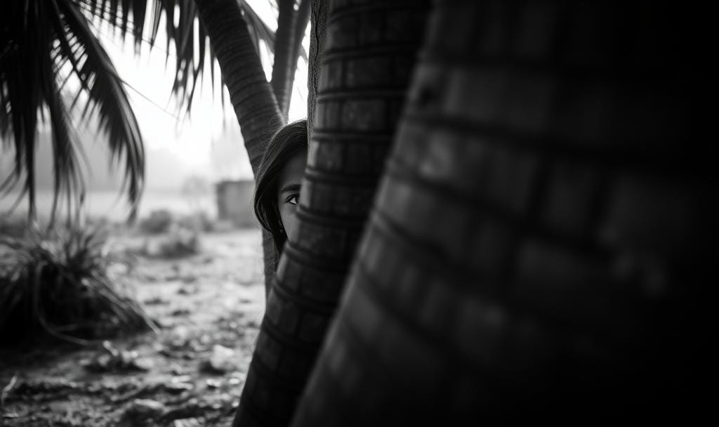 "उनके आने से पहले मैं पापा को लेकर चली जाती हूँ." इतना कहकर वह गुफा के अंदर चली जाती है। गुफा के अंदर कई दरवाजे थे। भूलभुलैया की तुलना में गुफा बिल्कुल भी अलग नहीं थी। चलते समय उसे एक दरवाजा थोडा खुला दिखा। उसने दरवाज़ा खोलकर देखा कि उसके पिता घुटनों के बल बैठे थे। उनके पूरे कपड़ों पर खून लगा हुआ था। जो उसने अपने हाथो से कुछ दिन पहले प्याक किया था।माॅं ने साफ सूदरा धूल के दिया था। उनकी आँखें मुश्किल से खुली थीं। और हाथ, पैर जंजीरों से बंधे हुए थे। उनके पास एक लोहे का डन्डा पड़ा था, शायद उनपर उसका इस्तेमाल किया होगा।